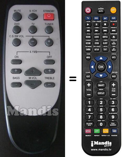 Télécommande qui remplace celle d'origine car elle possède les mêmes fonctions. Il ne s'agit pas d'une télécommande universelle mais d'une télécommande qui remplace celle d'origine. Vous recevrez la télécommande prête à fonctionner, vous n'aurez qu'à mettre les piles. Il n'est pas nécessaire de la programmer. Nous vous garantissons que la télécommande aura exactement les mêmes fonctions que celle d'origine.