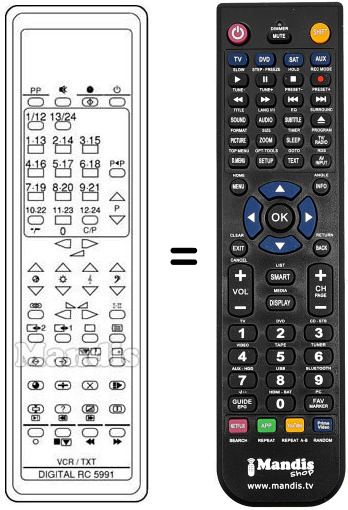 Télécommande qui remplace celle d'origine car elle possède les mêmes fonctions.