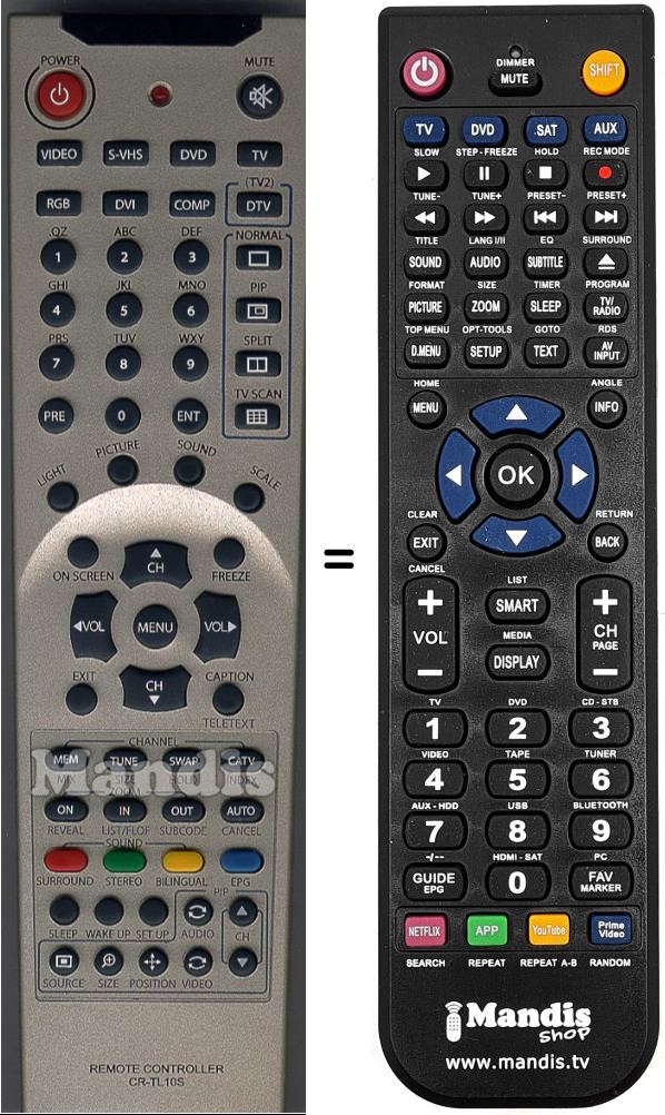 Télécommande qui remplace celle d'origine car elle possède les mêmes fonctions.
