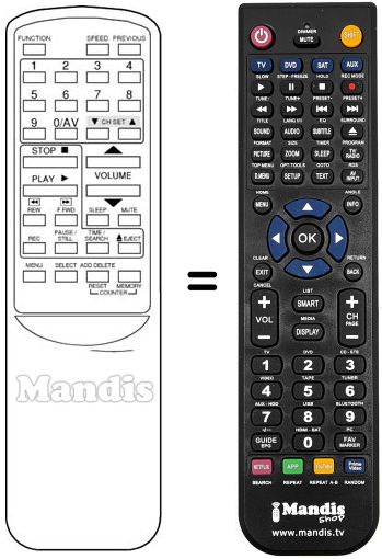 Télécommande qui remplace celle d'origine car elle possède les mêmes fonctions. Il ne s'agit pas d'une télécommande universelle mais d'une télécommande qui remplace celle d'origine. Vous recevrez la télécommande prête à fonctionner, vous n'aurez qu'à mettre les piles. Il n'est pas nécessaire de la programmer. Nous vous garantissons que la télécommande aura exactement les mêmes fonctions que celle d'origine.