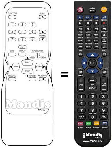 Télécommande qui remplace celle d'origine car elle possède les mêmes fonctions.