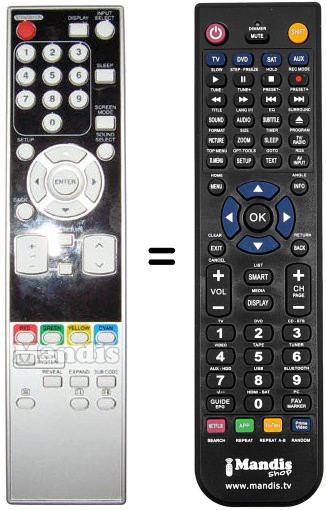 Télécommande qui remplace celle d'origine car elle possède les mêmes fonctions.