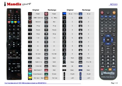 Un document est inclus pour vous aider à utiliser facilement la nouvelle télécommande, en indiquant la correspondance des boutons.