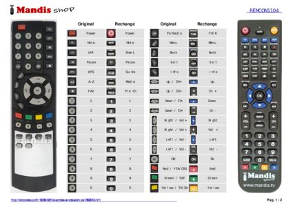 Un document est inclus pour vous aider à utiliser facilement la nouvelle télécommande, en indiquant la correspondance des boutons.