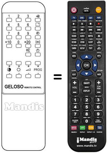 Télécommande qui remplace celle d'origine car elle possède les mêmes fonctions.