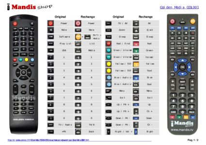 Un document est inclus pour vous aider à utiliser facilement la nouvelle télécommande, en indiquant la correspondance des boutons.