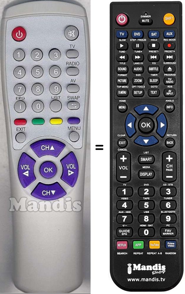 Il ne s'agit pas d'une télécommande universelle mais d'une télécommande qui remplace celle d'origine.