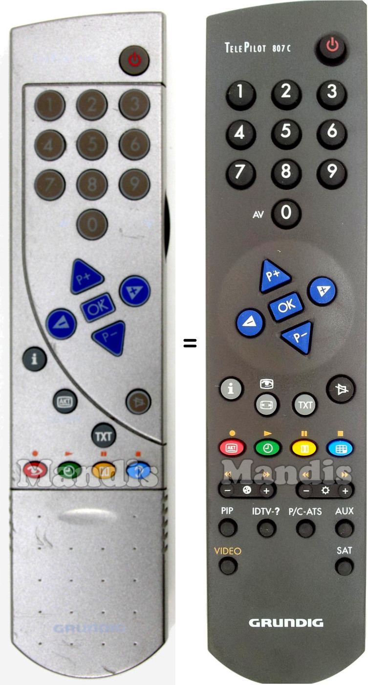 Télécommandes équivalentes qui remplacent la télécommande GRUNDIG Tele Pilot 807 C (296420611700) et possèdent exactement les mêmes fonctions :