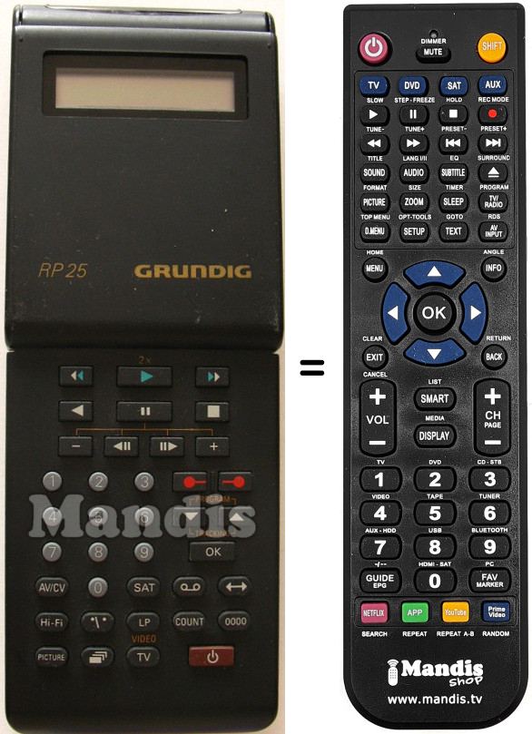 Télécommande qui remplace celle d'origine car elle possède les mêmes fonctions.