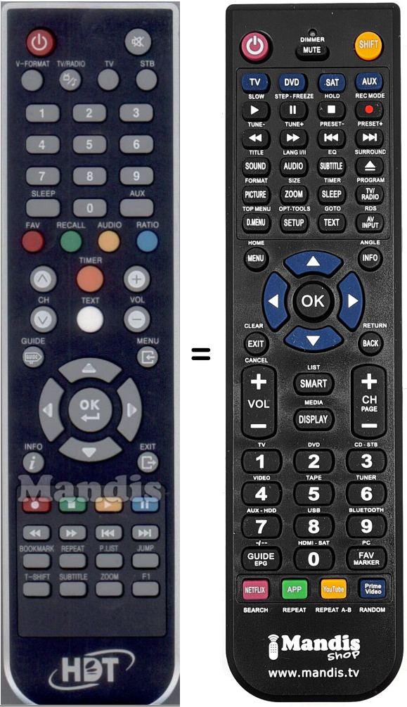 Télécommande qui remplace celle d'origine car elle possède les mêmes fonctions.