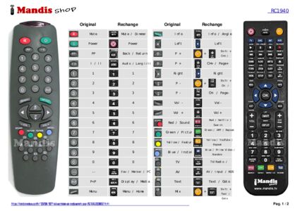 Un document est inclus pour vous aider à utiliser facilement la nouvelle télécommande, en indiquant la correspondance des boutons.