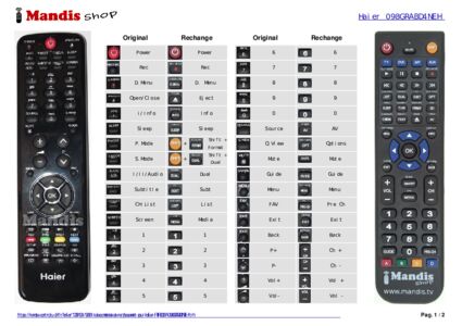 Un document est inclus pour vous aider à utiliser facilement la nouvelle télécommande, en indiquant la correspondance des boutons.