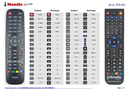Un document est inclus pour vous aider à utiliser facilement la nouvelle télécommande, en indiquant la correspondance des boutons.