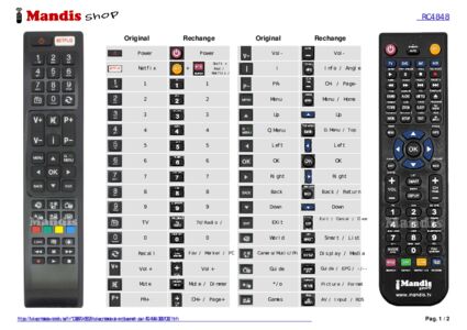 Un document est inclus pour vous aider à utiliser facilement la nouvelle télécommande, en indiquant la correspondance des boutons.