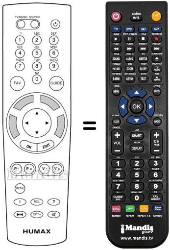Télécommande qui remplace celle d'origine car elle possède les mêmes fonctions.