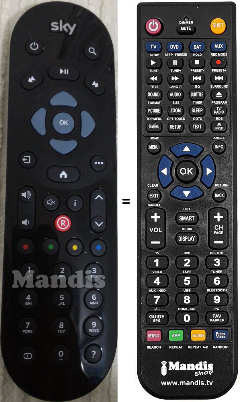 Télécommande qui remplace celle d'origine car elle possède les mêmes fonctions.