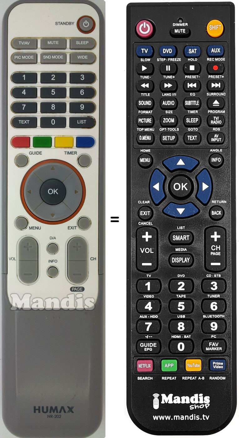Télécommande qui remplace celle d'origine car elle possède les mêmes fonctions.