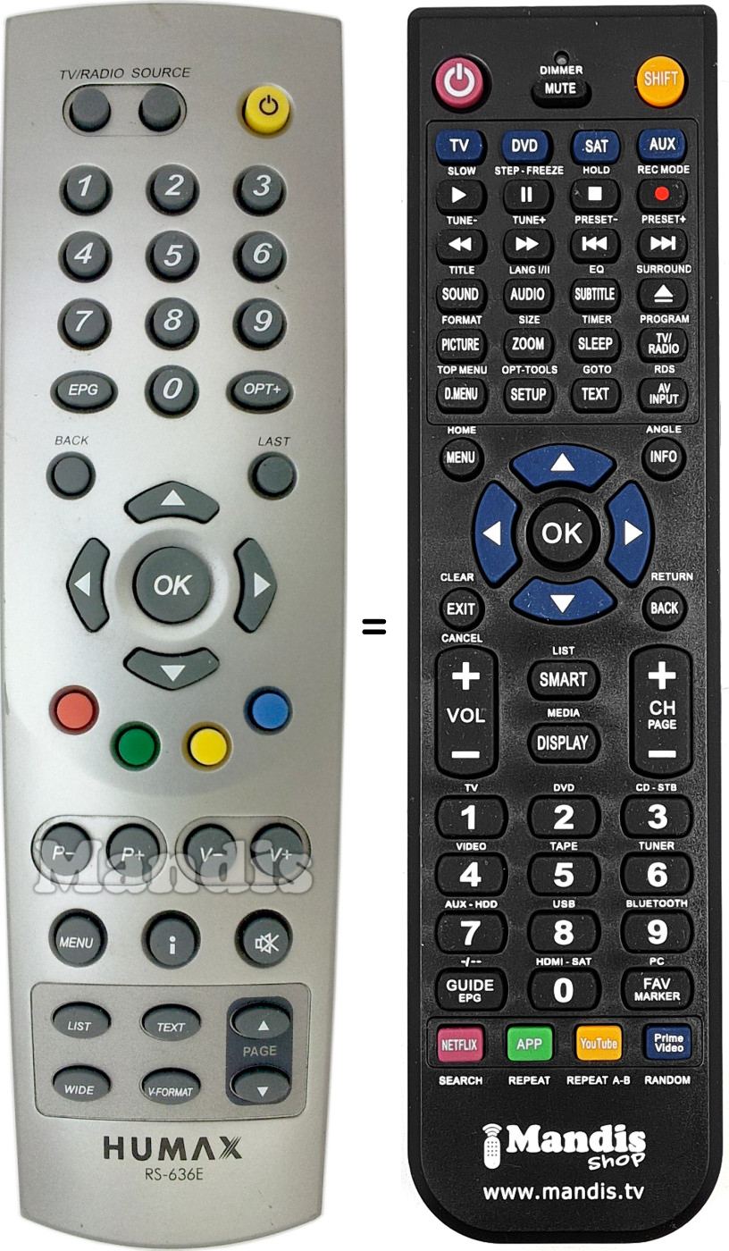 Télécommande qui remplace celle d'origine car elle possède les mêmes fonctions.