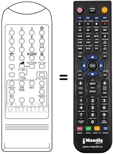 Télécommande qui remplace celle d'origine car elle possède les mêmes fonctions.