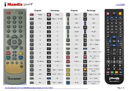 Un document est inclus pour vous aider à utiliser facilement la nouvelle télécommande, en indiquant la correspondance des boutons.
