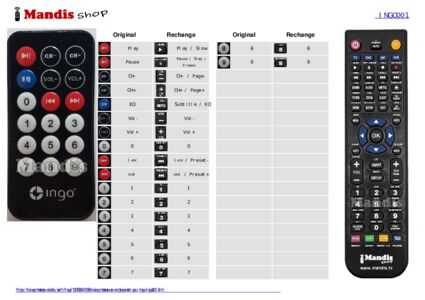 Cette télécommande remplace entièrement votre Ingo001 et offre toutes les fonctions de l'originale.