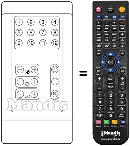 Télécommande qui remplace celle d'origine car elle possède les mêmes fonctions.