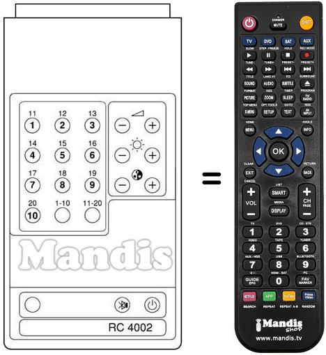 Télécommande qui remplace la télécommande d'origine RC4002 car elle possède les mêmes fonctions.