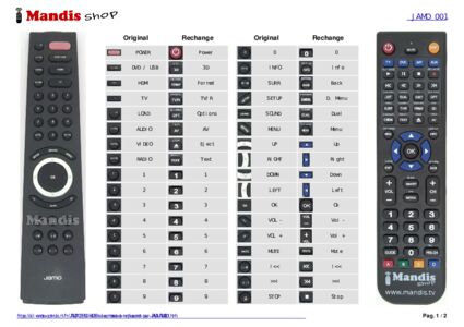 Un document est inclus pour vous aider à utiliser facilement la nouvelle télécommande, en indiquant la correspondance des boutons.