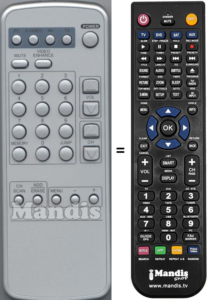 Télécommande qui remplace celle d'origine car elle possède les mêmes fonctions. Il ne s'agit pas d'une télécommande universelle mais d'une télécommande qui remplace celle d'origine. Vous recevrez la télécommande prête à fonctionner, vous n'aurez qu'à mettre les piles. Il n'est pas nécessaire de la programmer. Nous vous garantissons que la télécommande aura exactement les mêmes fonctions que celle d'origine.