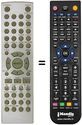 Télécommande qui remplace celle d'origine car elle possède les mêmes fonctions.