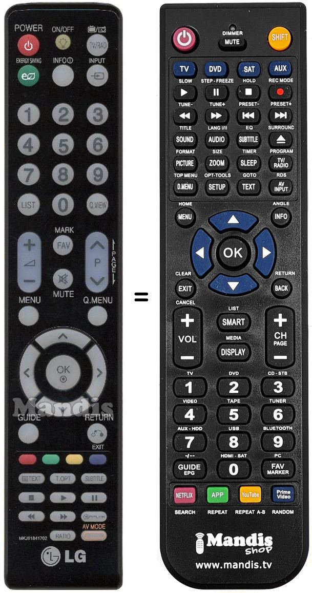 Télécommande qui remplace la télécommande d'origine MKJ61841702 car elle possède les mêmes fonctions.