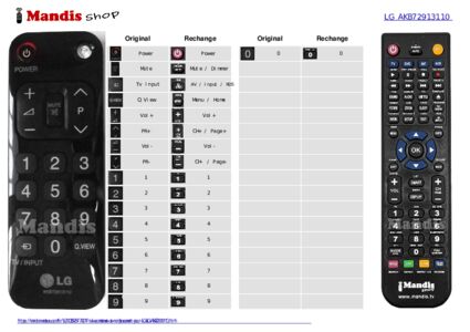 Un document est inclus pour vous aider à utiliser facilement la nouvelle télécommande, en indiquant la correspondance des boutons.