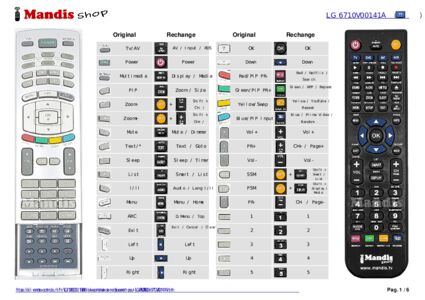Un document est inclus pour vous aider à utiliser facilement la nouvelle télécommande, en indiquant la correspondance des boutons.