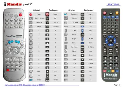 Un document est inclus pour vous aider à utiliser facilement la nouvelle télécommande, en indiquant la correspondance des boutons.