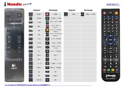 Cette télécommande remplace entièrement votre REMCON1571 et offre toutes les fonctions de l'originale.