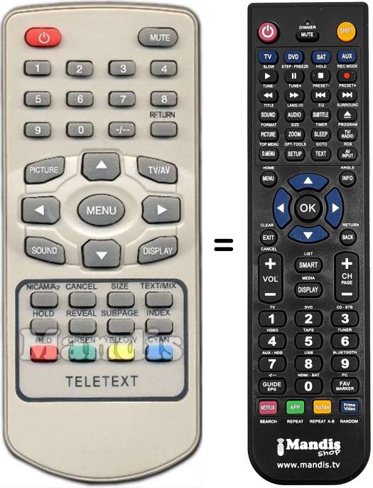 Télécommande qui remplace la télécommande d'origine TFT2001 car elle possède les mêmes fonctions.