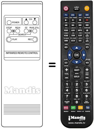 Télécommande qui remplace la télécommande d'origine RC 53 car elle possède les mêmes fonctions.