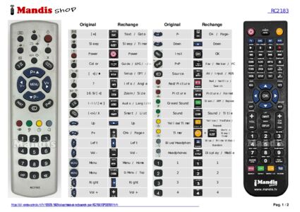 Un document est inclus pour vous aider à utiliser facilement la nouvelle télécommande, en indiquant la correspondance des boutons.