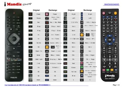 Un document est inclus pour vous aider à utiliser facilement la nouvelle télécommande, en indiquant la correspondance des boutons.