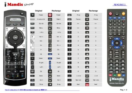 Un document est inclus pour vous aider à utiliser facilement la nouvelle télécommande, en indiquant la correspondance des boutons.