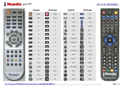 Un document est inclus pour vous aider à utiliser facilement la nouvelle télécommande, en indiquant la correspondance des boutons.