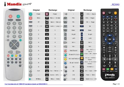 Un document est inclus pour vous aider à utiliser facilement la nouvelle télécommande, en indiquant la correspondance des boutons.