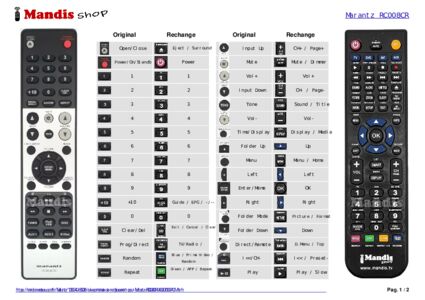 Un document est inclus pour vous aider à utiliser facilement la nouvelle télécommande, en indiquant la correspondance des boutons.