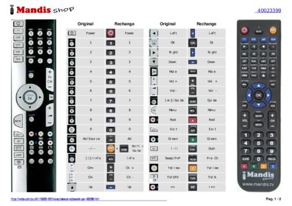 Un document est inclus pour vous aider à utiliser facilement la nouvelle télécommande, en indiquant la correspondance des boutons.