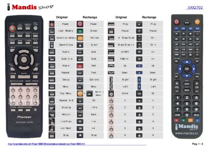 Un document est inclus pour vous aider à utiliser facilement la nouvelle télécommande, en indiquant la correspondance des boutons.