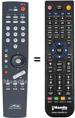 Télécommande qui remplace la télécommande d'origine RK18 (060RK18G4) car elle possède les mêmes fonctions.