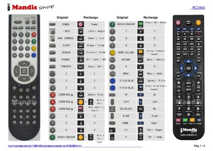 Un document est inclus pour vous aider à utiliser facilement la nouvelle télécommande, en indiquant la correspondance des boutons.