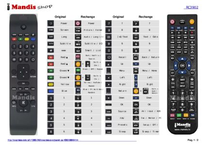 Un document est inclus pour vous aider à utiliser facilement la nouvelle télécommande, en indiquant la correspondance des boutons.