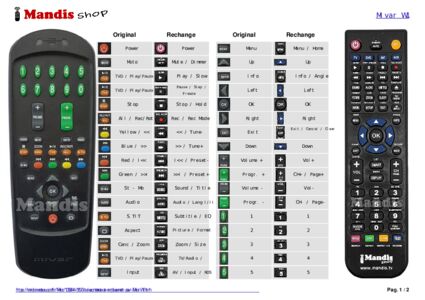 Un document est inclus pour vous aider à utiliser facilement la nouvelle télécommande, en indiquant la correspondance des boutons.