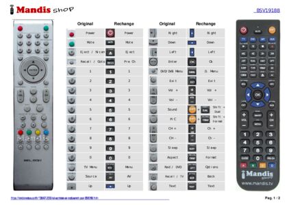 Un document est inclus pour vous aider à utiliser facilement la nouvelle télécommande, en indiquant la correspondance des boutons.